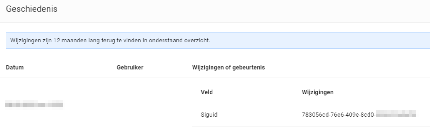 Controleer altijd via 'bekijk geschiedenis' of de factuur succesvol is verzonden. Indien het succesvol verzonden is, komt er een extra regel met Siguid te staan.
